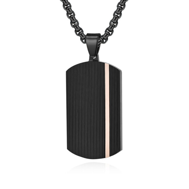 Men’s Stainless Steel Dog Tag Pendant with a stripe, available in steel/rose gold plating colors