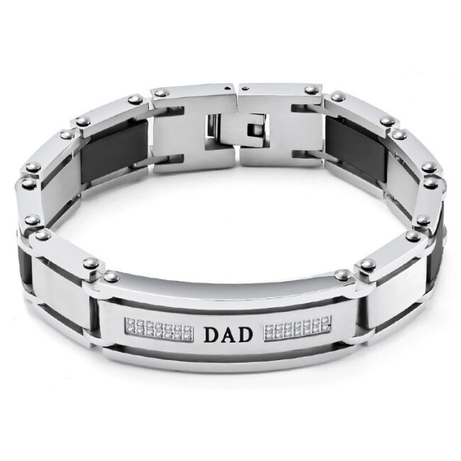 Men’s Polished 316L Stainless Steel Two Tone Bracelet with DAD ID tag and White CZ 5A inlaid