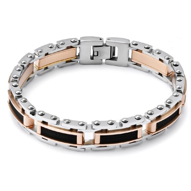 Men’s 316L Stainless Steel IP Black and Rose Gold Plated Sandwiched Steel Rope Bracelet Two Tone