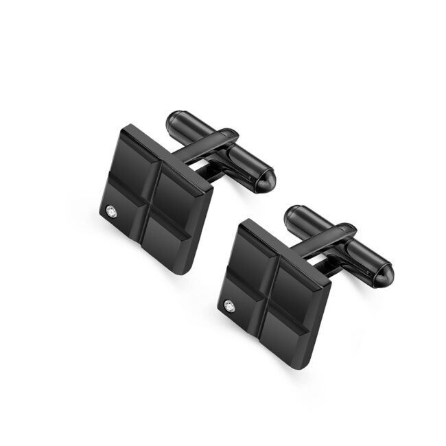 width 14mm height 14mm 316L stainless steel premium French grooved style fashion suit cufflinks Steel/IP Black/IP Gold CNC set inlaid CZ