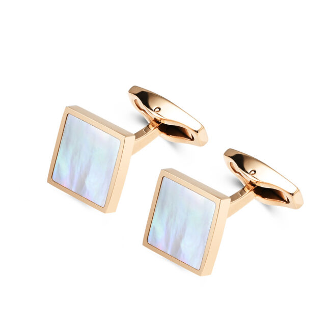 width 14mm height 14mm 316L stainless steel French style white shell cufflinks IP Yellow Gold/IP Rose Gold