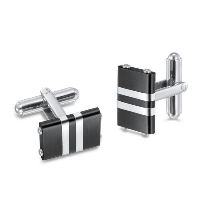 width 14mm height 14mm 316L stainless steel premium French grooved style fashion suit cufflinks Steel/IP Black/IP Gold CNC set inlaid CZ