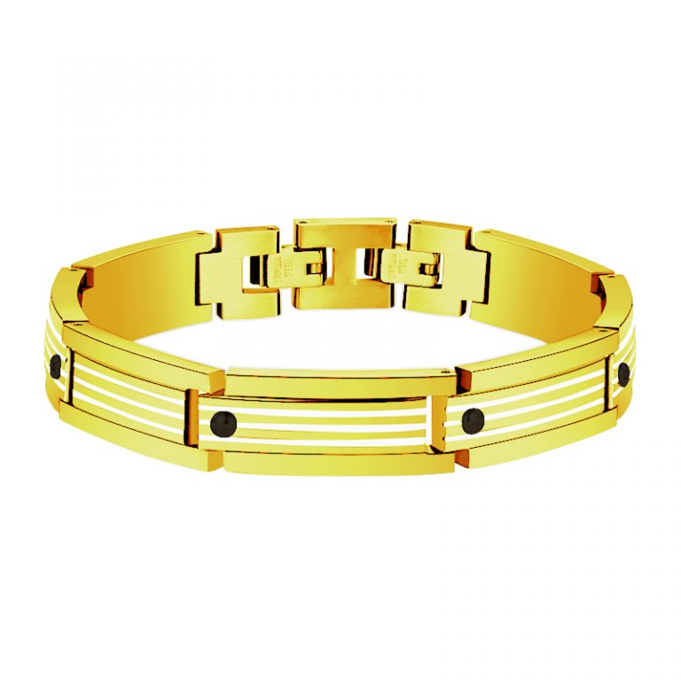 Men’s 316L Stainless Steel High Polished Finished Yellow gold Plated Bracelet With Black Screws