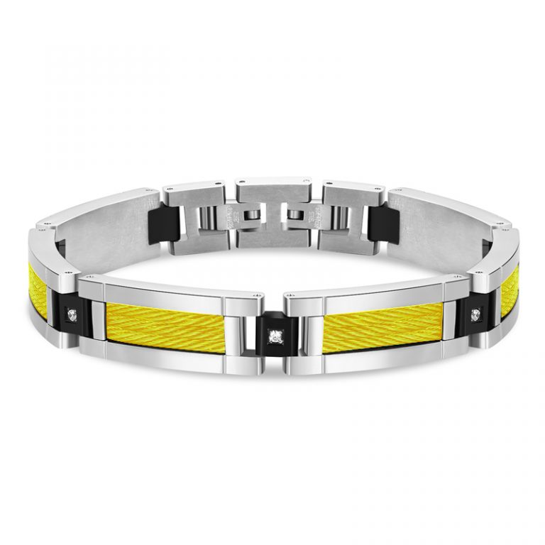 Men’s 316L Stainless Steel Polished & Matte Finished Black Plated Links Bracelet with Gold Steel wire