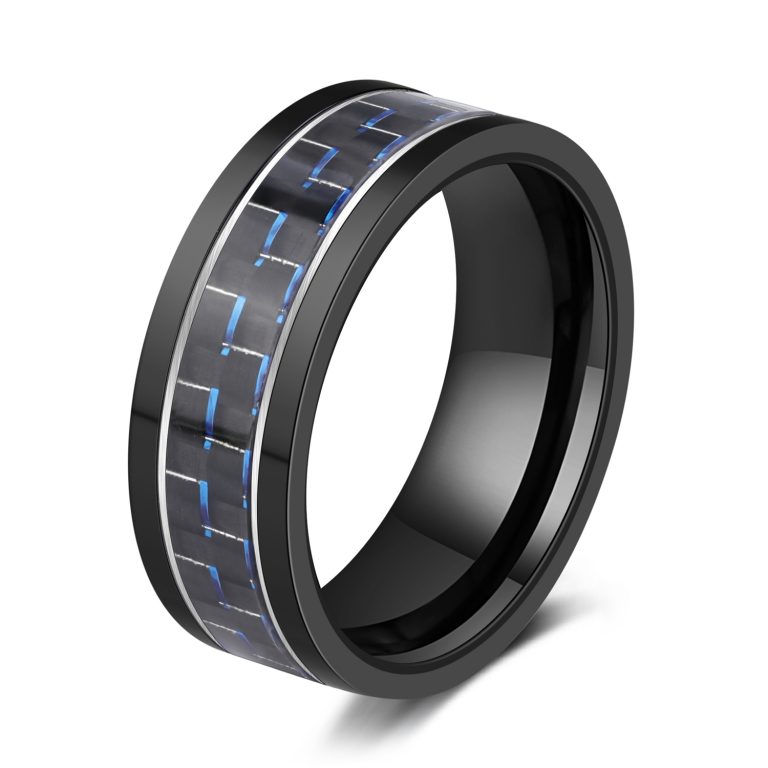 Black & Blue IP Plated Stainless Steel with Forged Carbon Fiber Ring