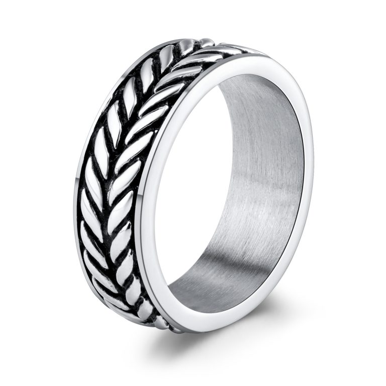 Antiqued finish Casting 316L Stainless Steel Ring with Wheat Pattern