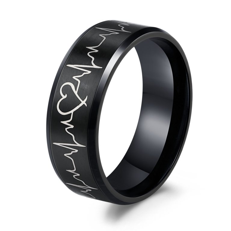 Brushed Finish Cute 316L Stainless Steel Black IP Plated Ring With Lightning Pattern Lasered