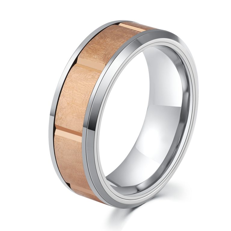 Handmade Brushed finish 316L Stainless Steel Ring With Rose gold IP Plated