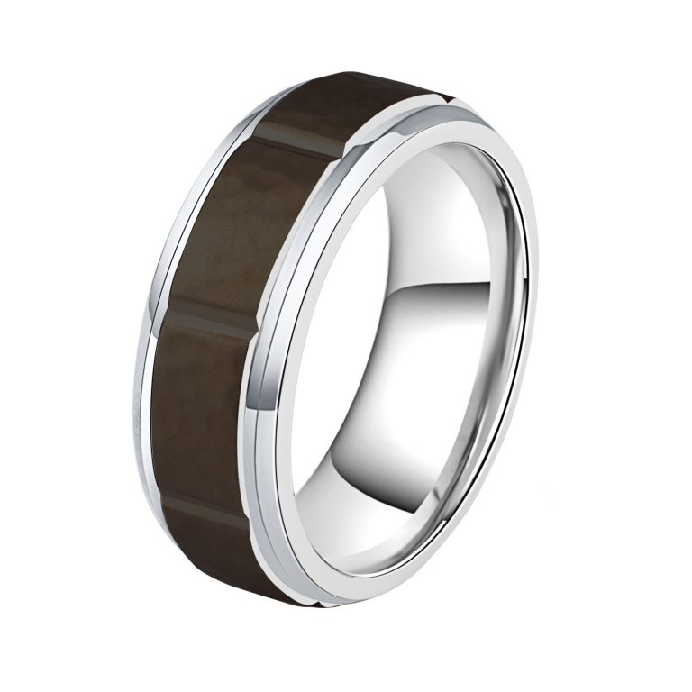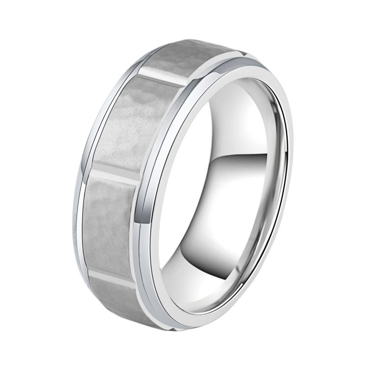 Hammered brushed Finish 316L Stainless Steel Ring with Black IP Plated