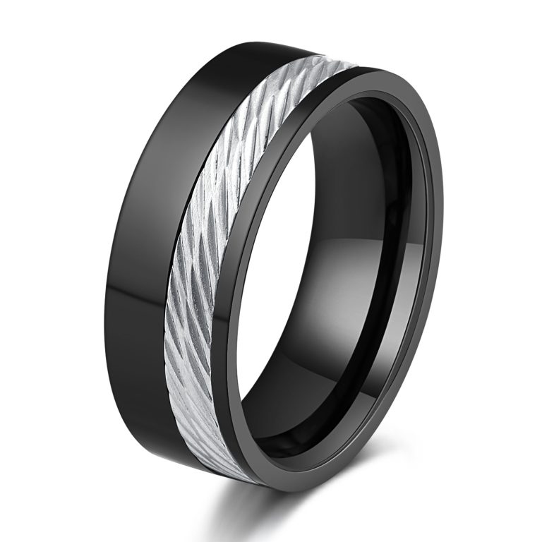 Tire Pattern Polished finish 316L Stainless Steel Ring With Black IP Plated