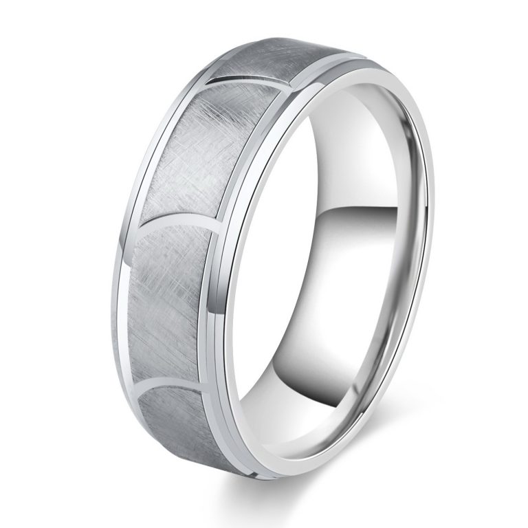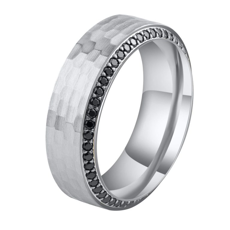 Hammered 316L Stainless Steel Brushed Finish Ring with Black CZs CNC Inlaid