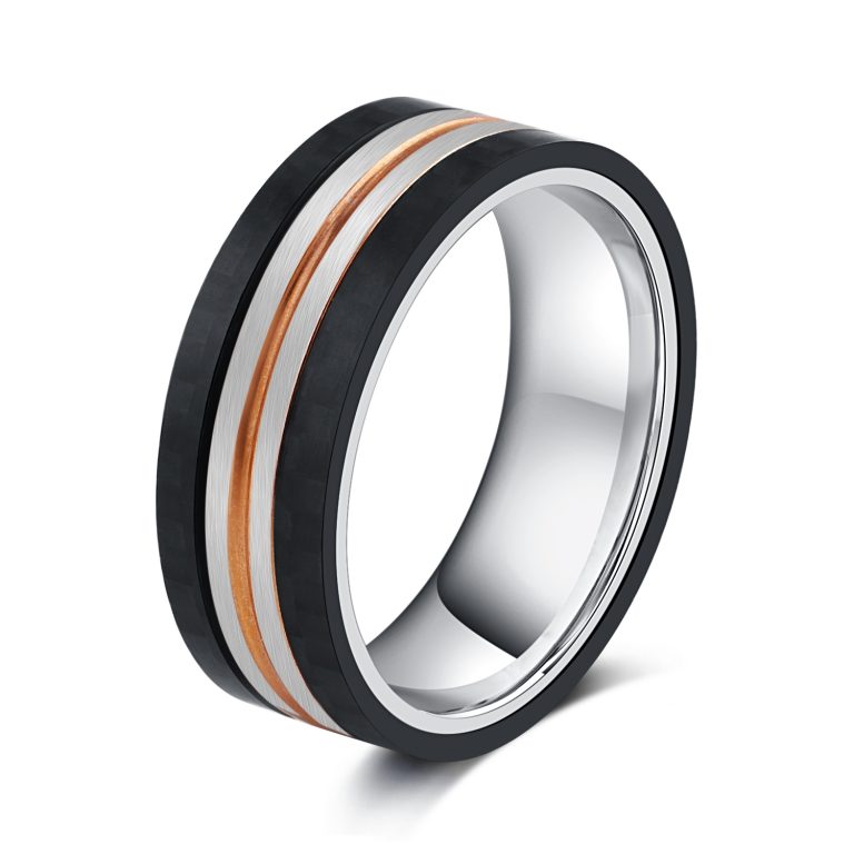 316L Stainless Steel & Solid Carbon Fiber Ring with Rose gold IP Plated