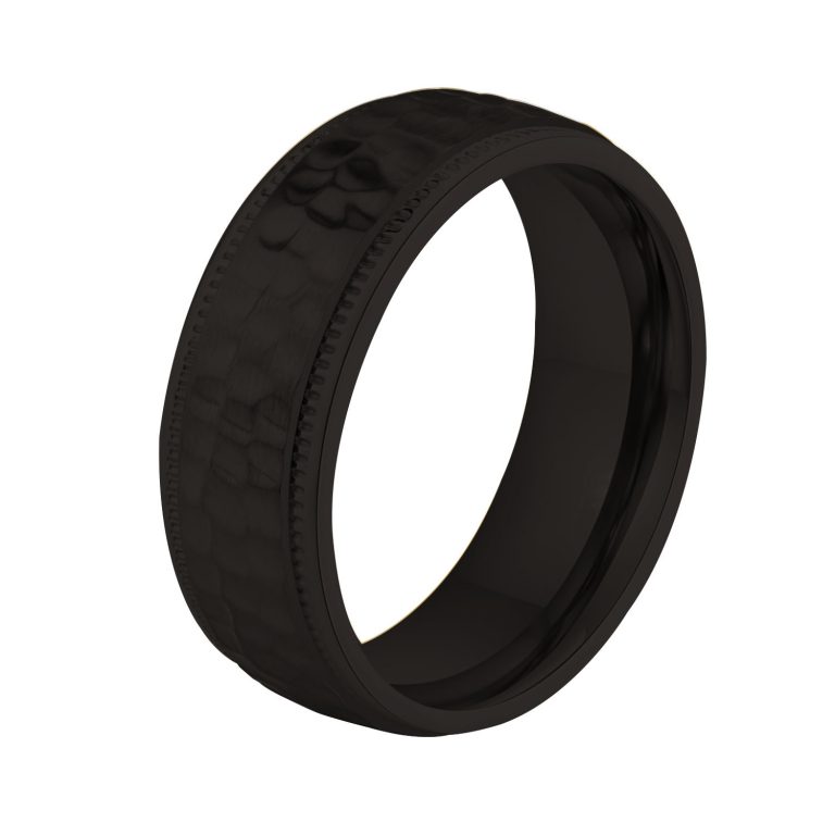 Hammered 316L Stainless Steel Ring with Black IP Plated