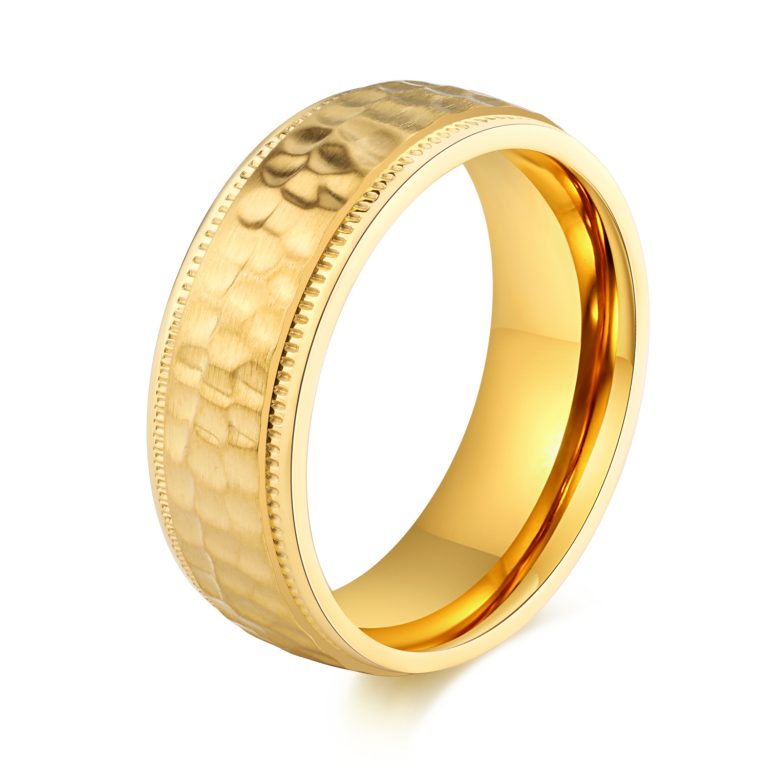 Hammered 316L Stainless Steel Ring with Yellow gold IP Plated