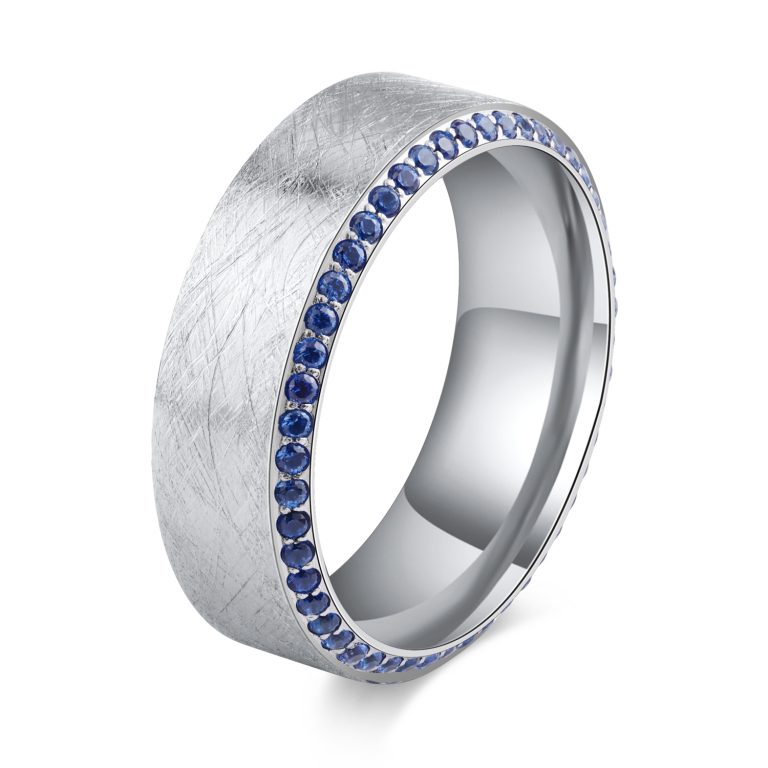 Handmade Brushed Finish 316L Stainless Steel Ring with Blue CZs CNC inlaid
