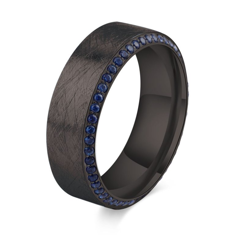 Handmade Brushed Finish 316L Stainless Steel Ring with Blue CZs CNC inlaid & Black IP Plated