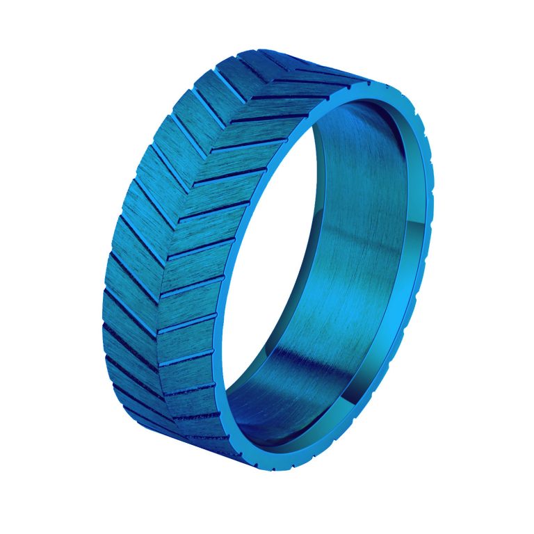 Blue IP Plated 316L Stainless Steel Brushed Finish Ring