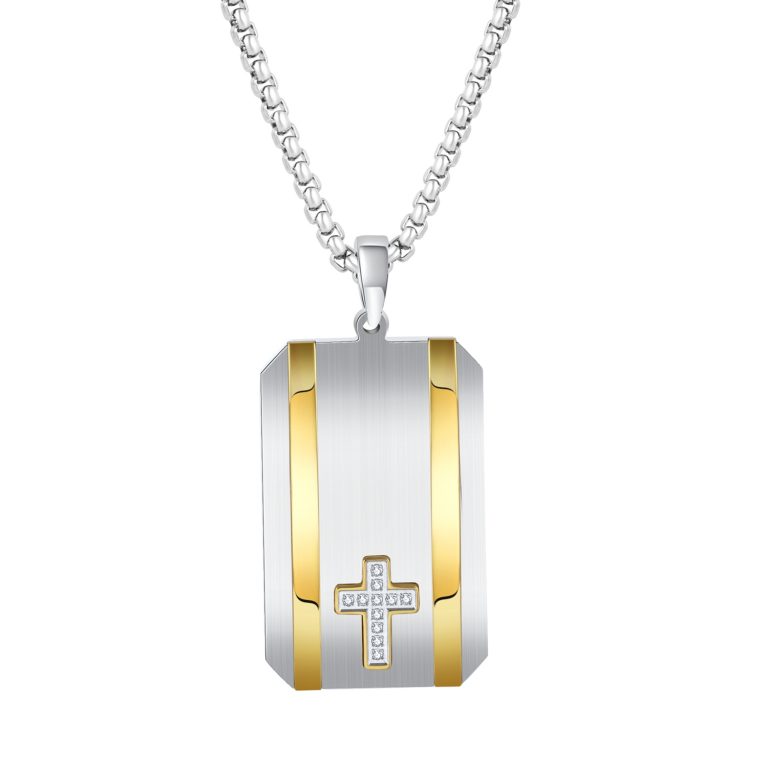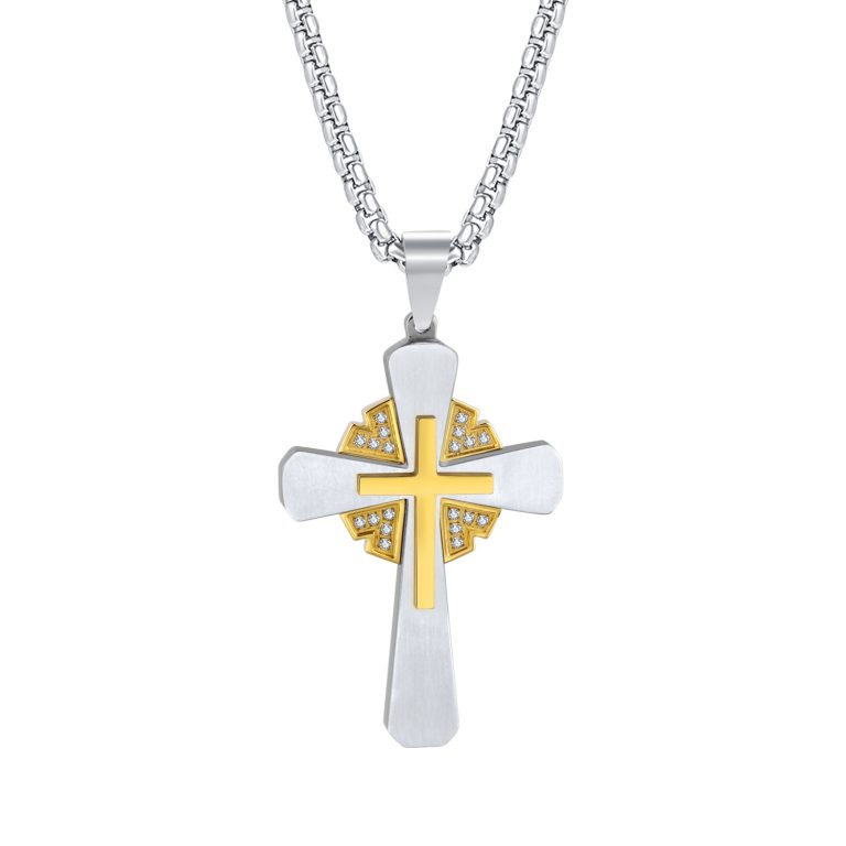Gold IP Plated 316L Stainless Steel Polished and Brushed Finish Layered Cross Pendant