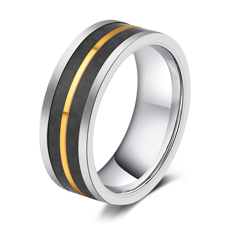 316L Stainless Steel & Solid Carbon Fiber Ring with Yellow gold IP Plated