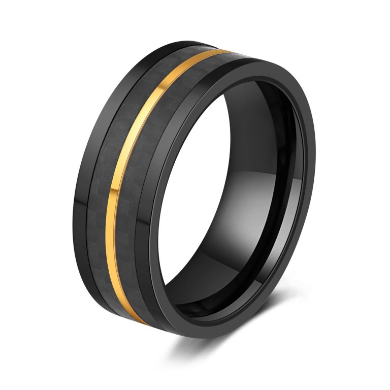 316L Stainless Steel & Solid Carbon Fiber Ring with Black and Yellow gold IP Plated