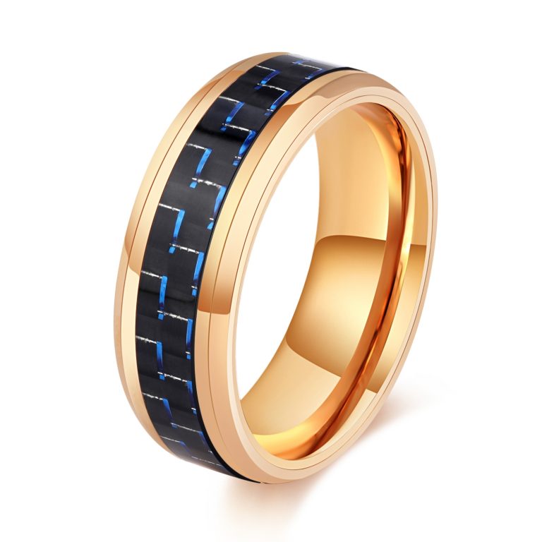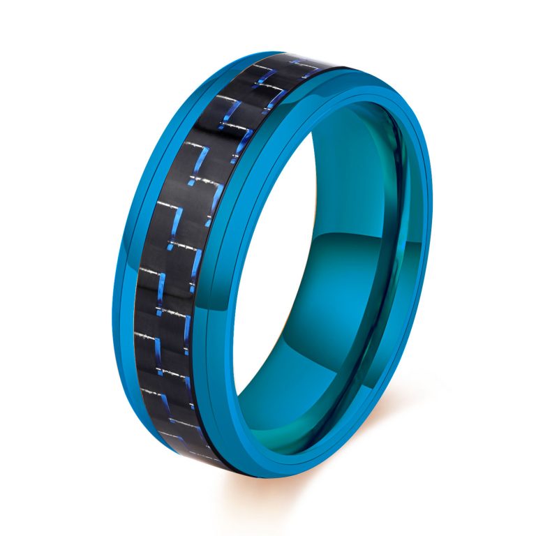 316L Stainless Steel & Solid Carbon Fiber Ring with Blue IP Plated
