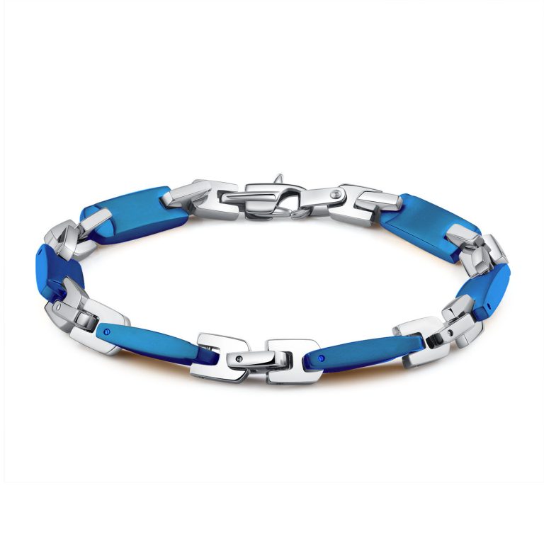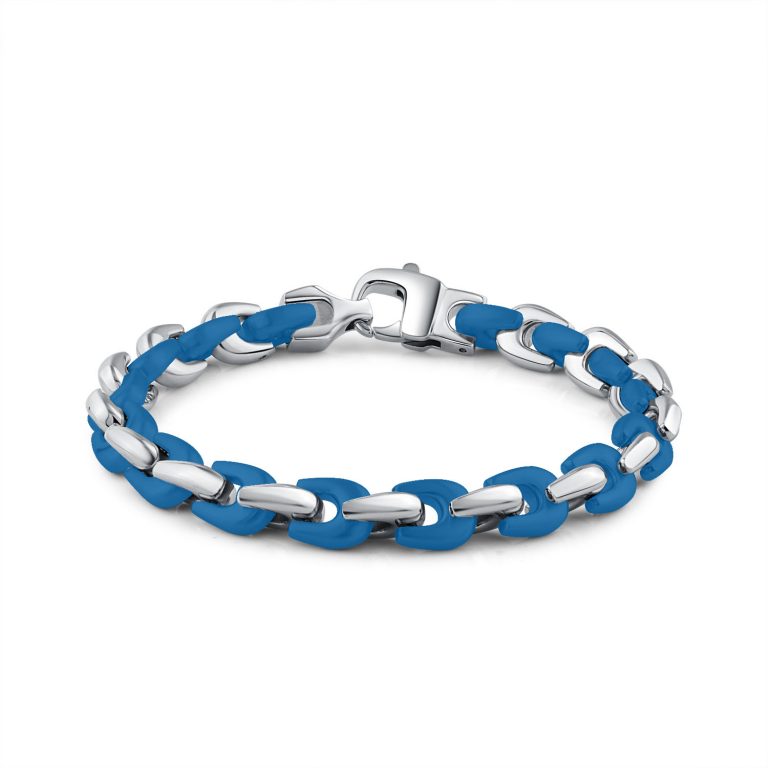 Men’s 316L Stainless Steel Brushed and Polished Finish Blue IP Plated U Links Bracelet