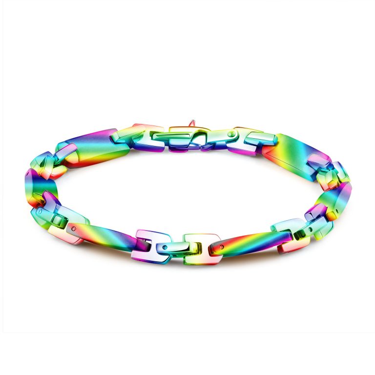 Men’s 316L Stainless Steel Brushed and Polished Finish Rainbow IP Plated Links Bracelet