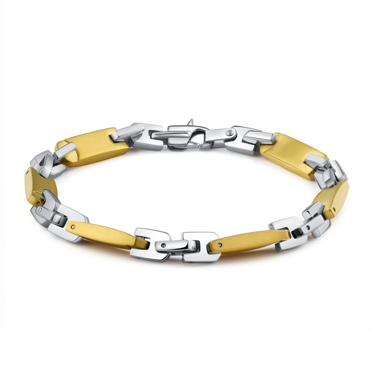 Men’s 316L Stainless Steel Brushed and Polished Finish Gold IP Plated Links Bracelet