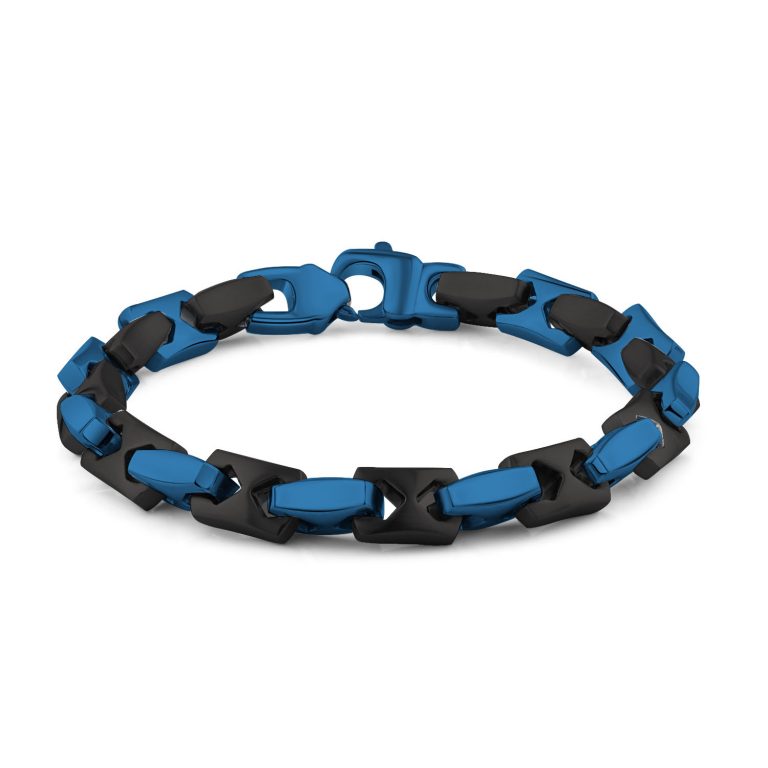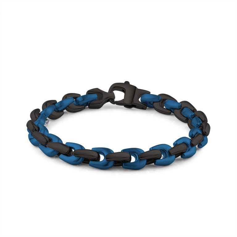 Men’s 316L Stainless Steel Brushed and Polished Finish Black & Blue IP Plated U Links Bracelet