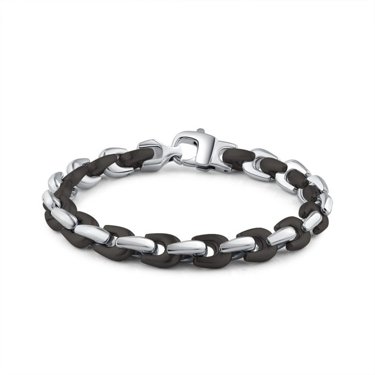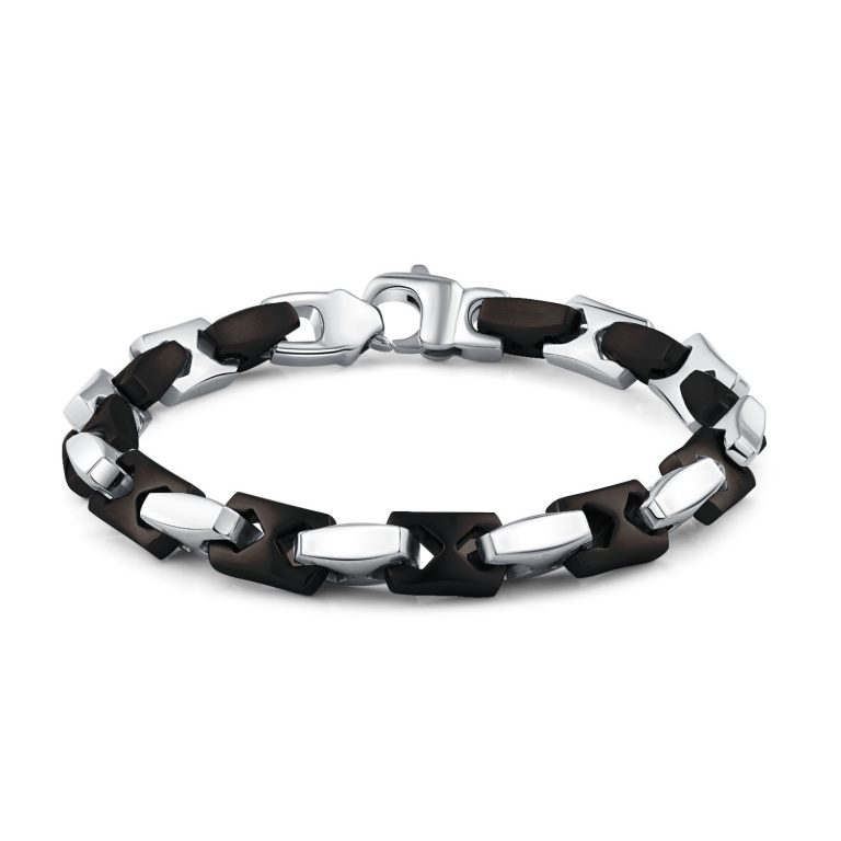 Men’s 316L Stainless Steel Brushed and Polished Finish Black IP Plated U Links Bracelet