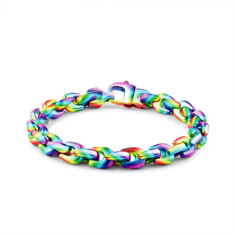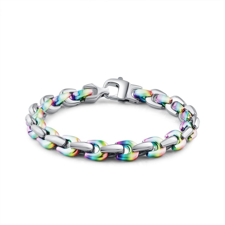 Men’s 316L Stainless Steel Brushed and Polished Finish Rainbow IP Plated U Links Bracelet