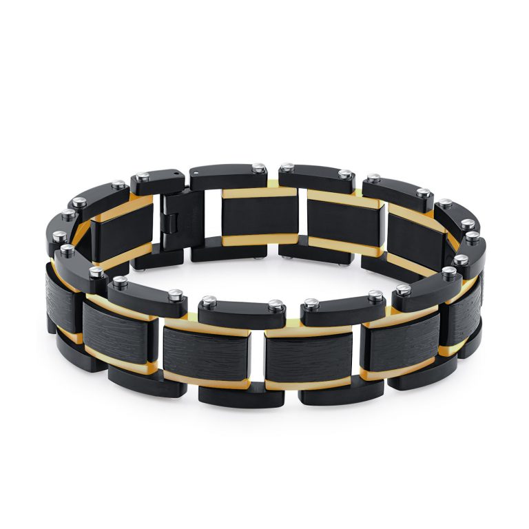 Men’s 316L Stainless Steel Matte Finish Black & Gold Plated Links Bracelet