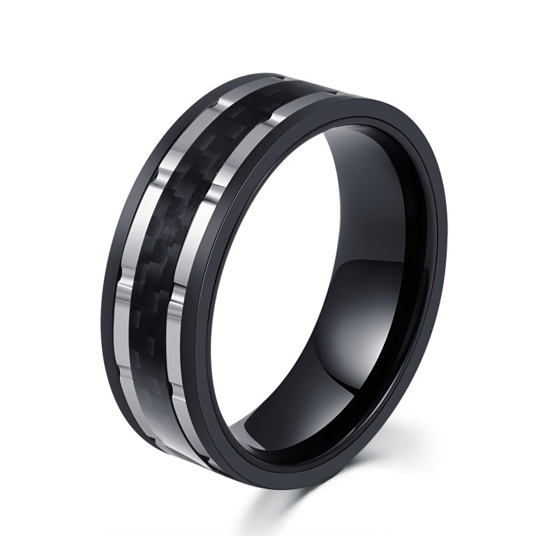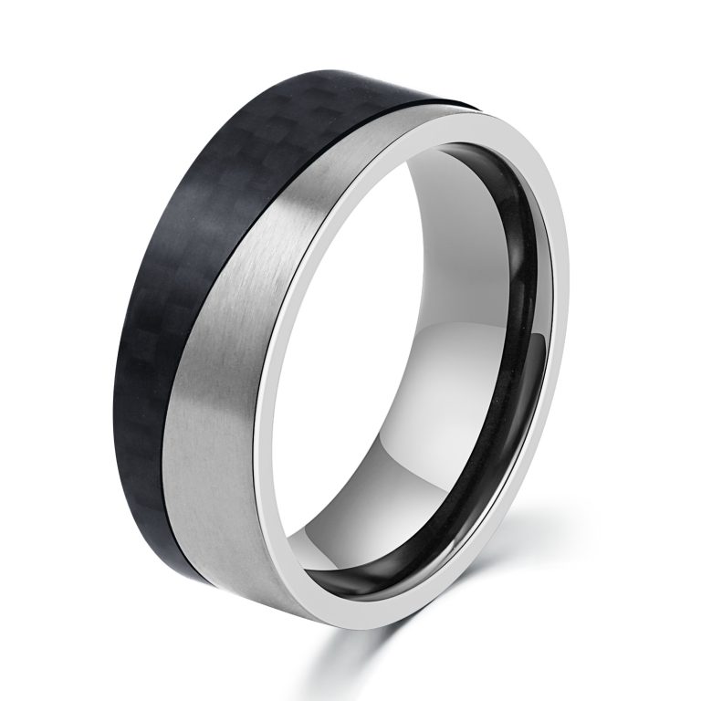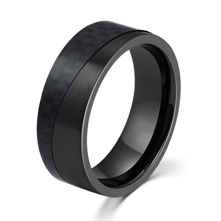Antiqued Black IP Plated & Solid Carbon Fiber Ring