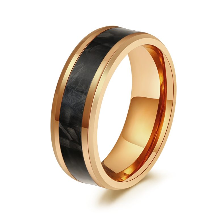 Shiny Rose gold IP Plated Stainless Steel With Solid Carbon fiber Ring