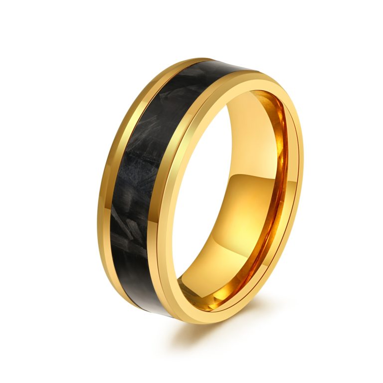 Shiny Yellow gold IP Plated Stainless Steel With Solid Carbon fiber Ring