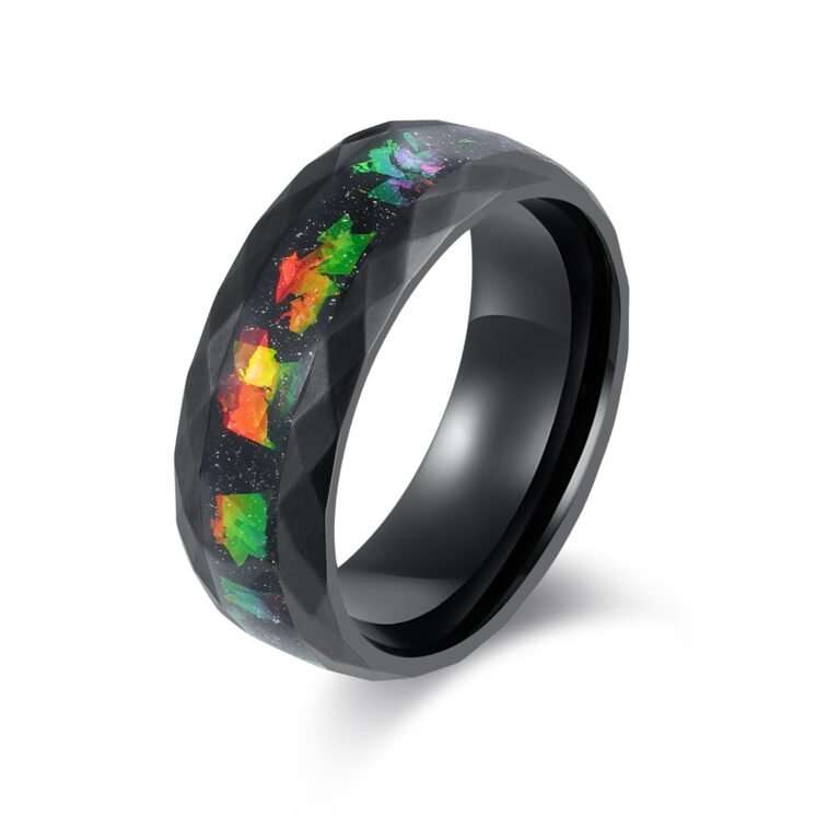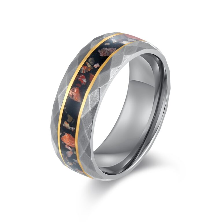 Hammered S.ST ring with colorful forged carbon fiber inlaid, as pic