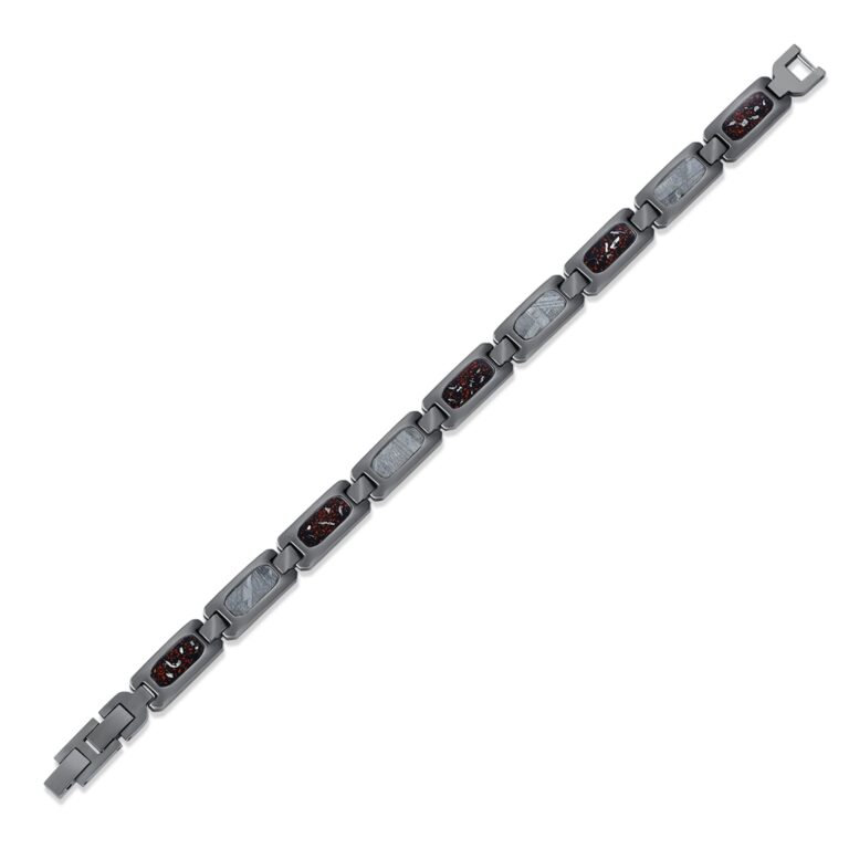 S.ST bracelet with red Dino bone & Meteorite inlaid, as pic