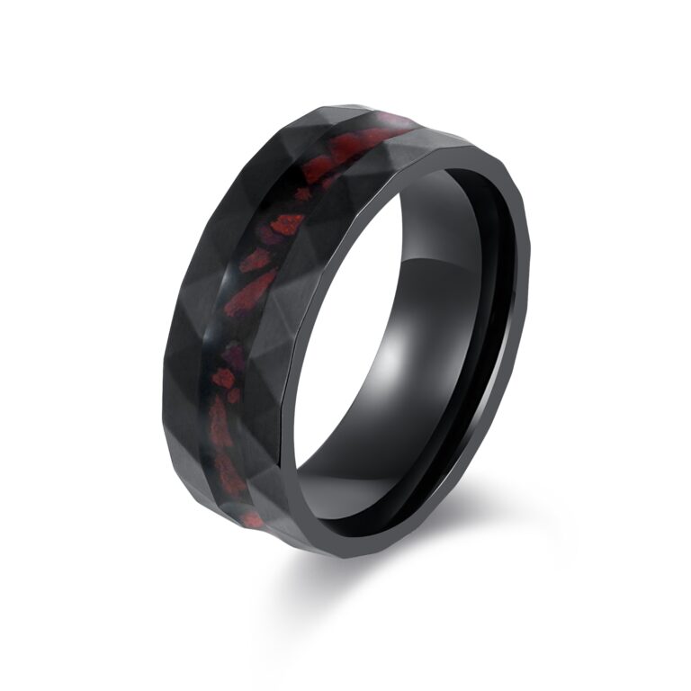 Hammered S.ST ring with red dino bone inlaid, as pic