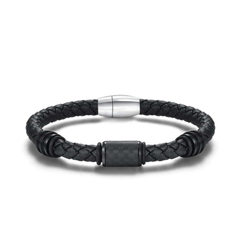 Men’s Cowhide woven leather bracelet with Solid Carbon Fiber with magnetic clasp
