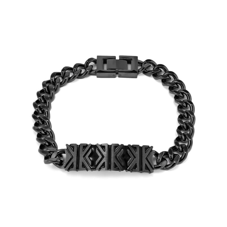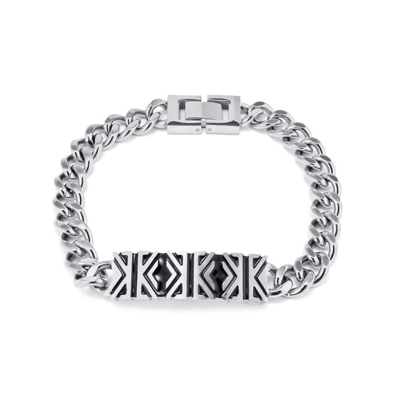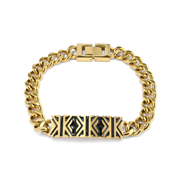 Men’s 316L Stainless Steel Curb Chain Links Bracelet With Ancient Chinese pattern in Black/Steel/Gold colors
