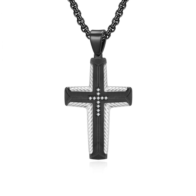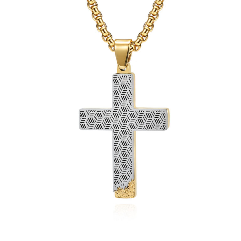 Men’s 316L Stainless Steel Two-Tone Cross Pendant with Steel & Carbon Fiber in Steel & Gold/Black colors