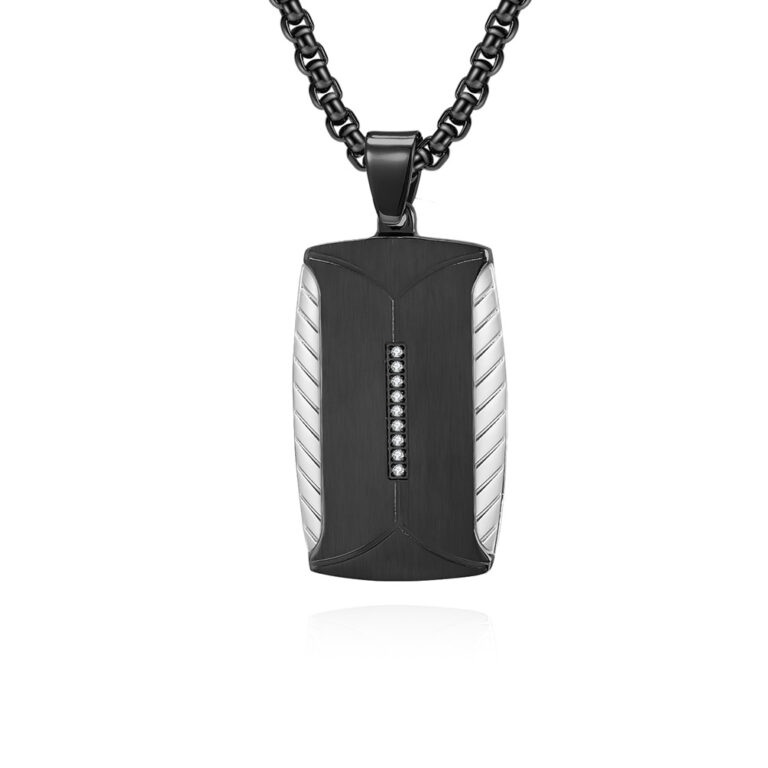Men’s 316L Stainless Steel Two-Tone Dog Tag Pendant with 9 CNC inlaid White CZs in Steel & Gold/Black
