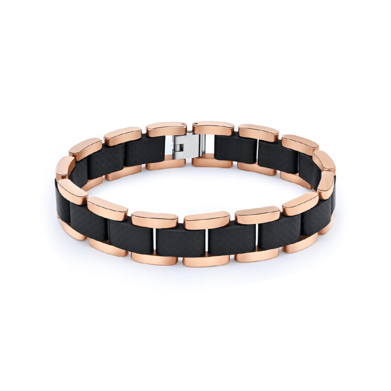 Men’s Pure Titanium & Carbon Fiber Simple Bracelet in IP Rose Gold