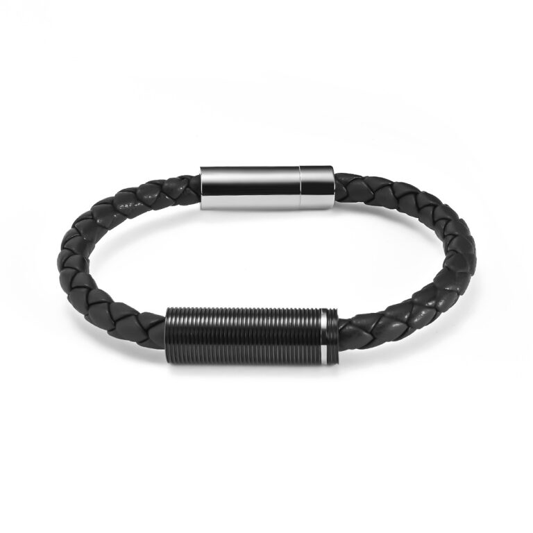 Men’s Woven Black Leather and Stainless Steel Spinning elements in IP Black, with Steel magnetic clasp