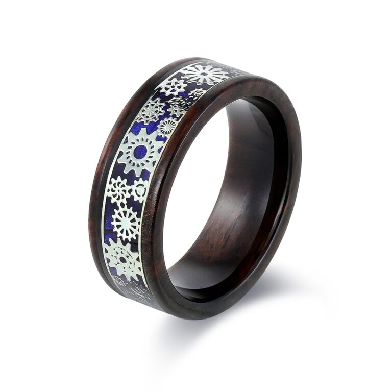 8mm-Tungsten/S.st/Titanium Polished signet ring with blue opal inlay