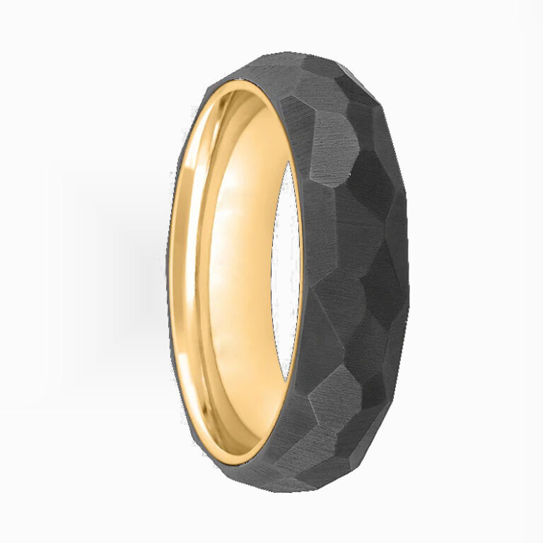 Men’s Hammered Stainless Steel wedding ring/band in IP Black and Gold