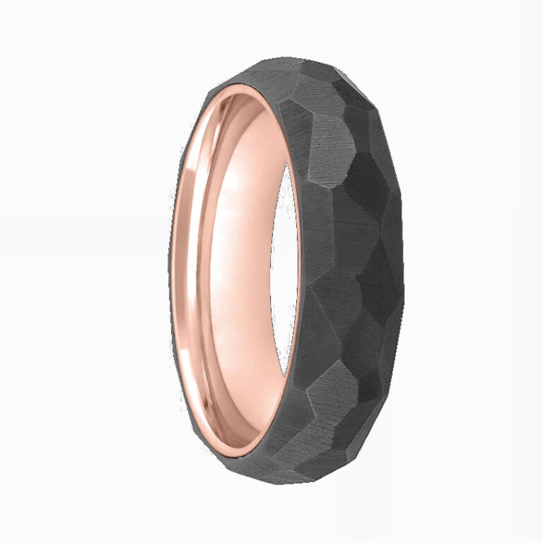 Men’s Hammered Stainless Steel wedding ring/band in IP Black and Rose Gold