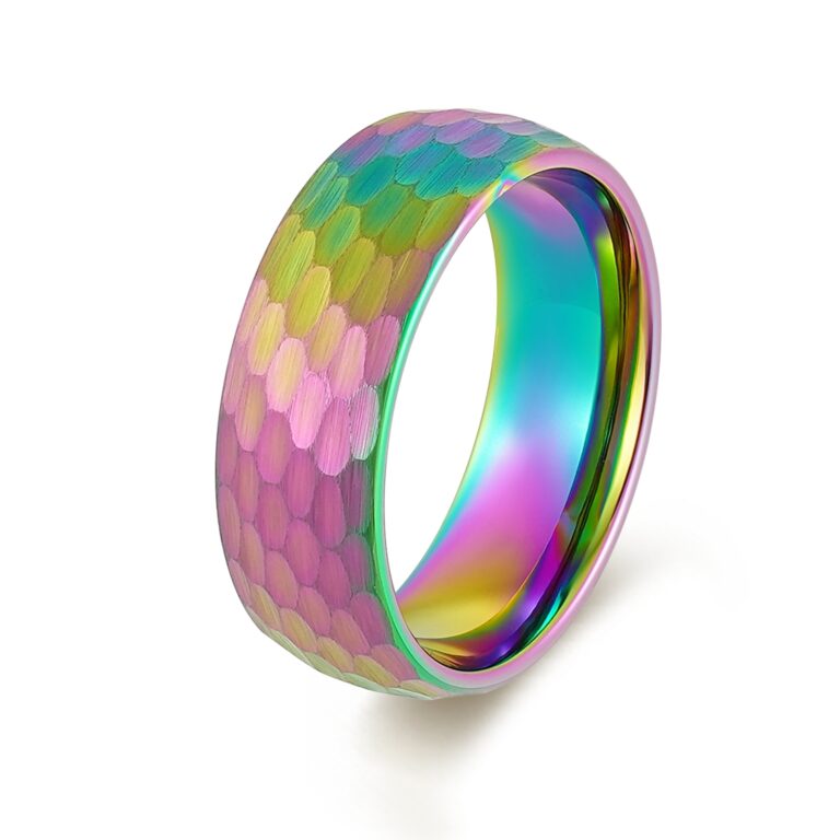 Men’s Hammered Stainless Steel wedding ring/band in IP Rainbow colors plating