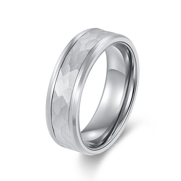 Men’s Hammered Stainless Steel wedding ring/band with Polished rounded edges