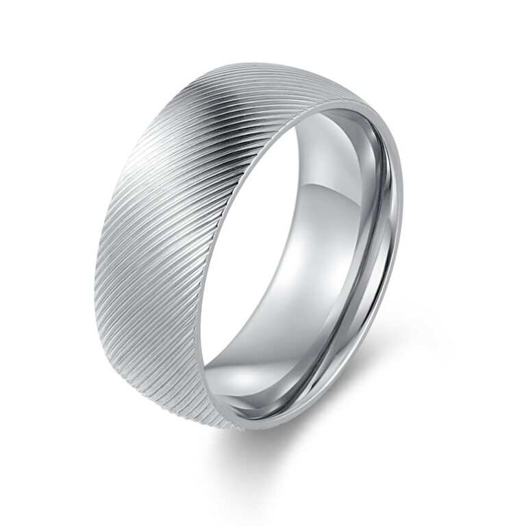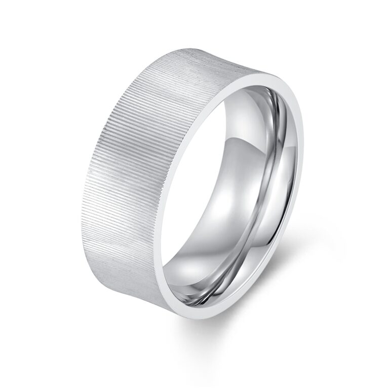 Men’s Polished Stainless Steel wedding ring/band with grooved pattern concave